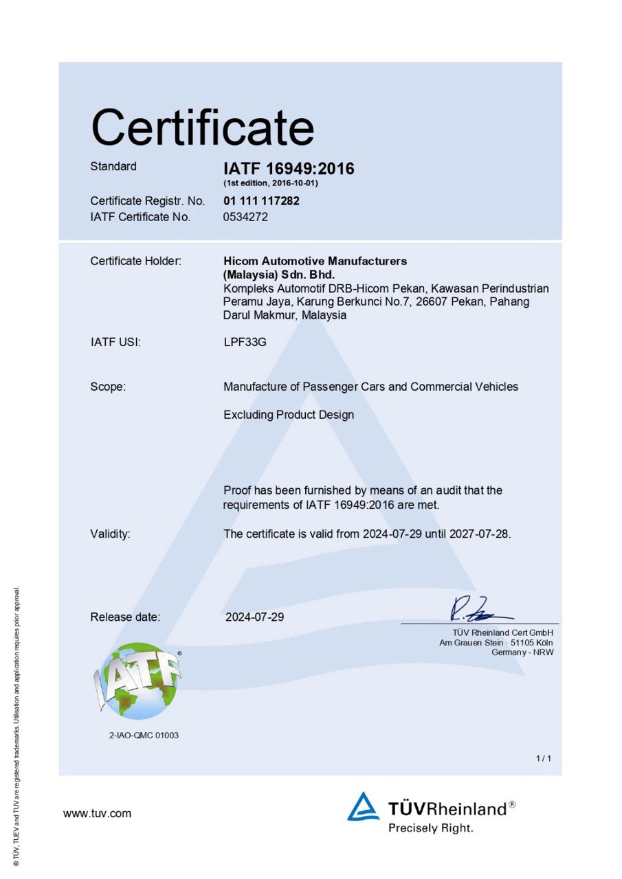 Established in 1983, HICOM Automotive Manufacturers (Malaysia) Sdn. Bhd. (“HICOM Automotive” or “HA”) is a proud subsidiary of HICOM Engineering and a cornerstone of Malaysia’s automotive industry. From our 143.7-acre state-of-the-art assembly plant in Pekan, Pahang, we have built a legacy of trust and precision spanning more than four decades. Over the years, we have assembled over half a million vehicles for more than 20 of the world’s most respected automotive marques, including iconic brands such as Mercedes-Benz, Volkswagen, Mitsubishi Motors, and commercial vehicles like Mitsubishi Fuso and Actros trucks under Hap Seng Truck Distribution.